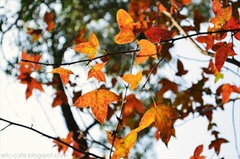 是日藍天白雲,比十二月上旬那天好得多,而且陽光角度較高,更易捕捉楓香紅葉在逆光照射下的美感。和煦陽光驅走寒意,甫抵大棠便忍不住脫下外衣,捲起衣袖,儼如夏天重臨。路上遇到一些義工說這個時候的楓香葉最美,雖則很多楓香葉仍未紅透,但尚未紅透的色彩其實更為豐富多變,有時甚至覺得完全變紅的楓香葉略為單調乏味,不妨細心留意不同顏色的樹葉,也許會有意外收穫。